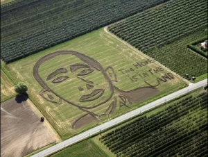 Gambarin’s land art, created with a tractor and plough on a field of grain stubble, was part of a global wave of tributes that celebrated the expedition.